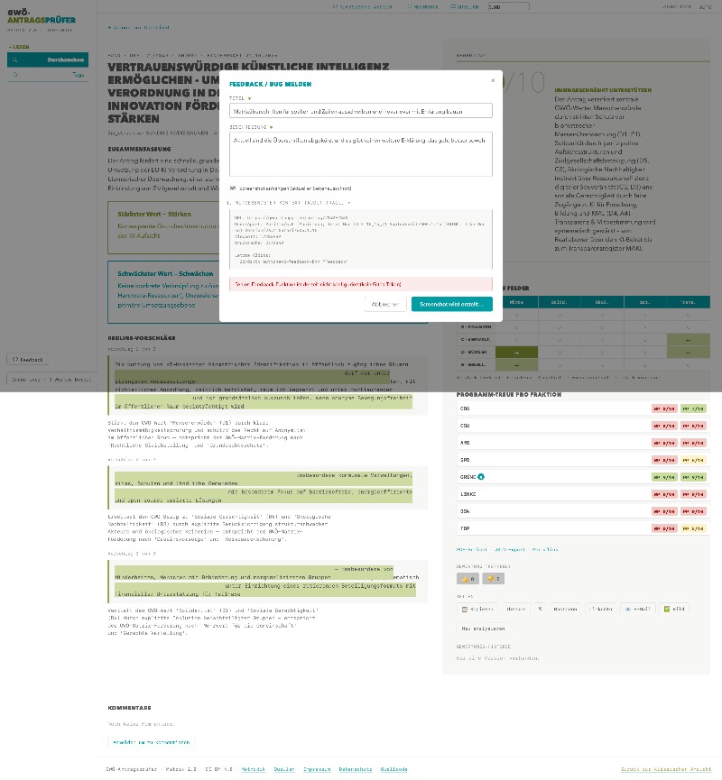 Aktuell sind die Überschriften abgekürzt und es gibt keinen weitere Erklärung. das geht besser sowohl in Methodik als auch in den Details der Anträge.